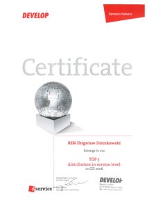 Aktualnie przez DEVELOP Europa firma BEN jest uważana za najdynamiczniej rozwijającego się Dystrybutora DEVELOP na świecie.